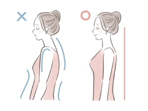 座るときは背筋を伸ばし、腰を反らし過ぎないよう意識することが大切です。スマートフォンの操作やパソコン作業では、猫背姿勢にならないよう注意しましょう。